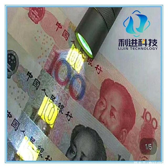 用此類熒光顏料調(diào)制出的防偽熒光油墨可用于公文、有價證券、證件和高級煙、酒、食品、藥品、化妝品等名牌商品的防偽包裝印刷。很多國家的紙幣上也應(yīng)用了熒光防偽技術(shù),比如我國的人民幣就添加了防偽標(biāo)示,在紫外燈的照射下發(fā)黃綠色熒光。效果非常好,并且發(fā)光效果長久不變。