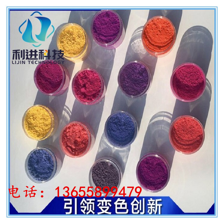 感光變色粉是經(jīng)由微膠囊技術(shù)處理過(guò)的產(chǎn)品,外觀為粉狀,粒徑在1~10μm之間,并具有耐高溫、抗氧化等微膠囊所改質(zhì)的特性。感光變色粉基本色有紫色、藍(lán)色、黃色、紅色。變色性良好且穩(wěn)定。流動(dòng)性高,容易均勻分散,可以相互混合,也可以和其他顏料、熒光顏料共用。