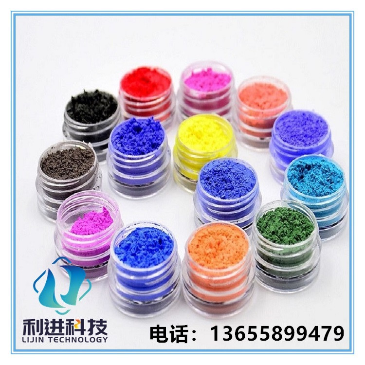 從深層次來(lái)探究感溫變色粉的變色原理的話,我們可以先了解電子得失型化合物的特質(zhì)。電子得失型化合物主要由三部分組成:電子給與型的呈色有機(jī)化合物、電子受性化合物、極性有機(jī)化合物。用通俗的名稱(chēng)分別表示為電子給予型化合物叫發(fā)色劑、電子受性化合物是顯色劑、極性有機(jī)化合物是助色劑。如明紅、對(duì)羧基安息香酸辛和甘三桂酸酯按一定比例組成粉紅色的熱致變色材料,當(dāng)其加熱到45為白色的可逆變化。另外 PSD-RR(無(wú)色熒烷染料)、2,3-甲苯基酸性磷酸酯、十六醇按一定比例配制的熱致變色材料加熱到70℃,由紅色到白色發(fā)生可逆變化。PSD-G(無(wú)色熒烷染料)1,1--(4羥基苯)一環(huán)己烷、二苯基硫醚按比例制成的熱致變色材料加熱到65℃產(chǎn)生由綠色到白色的可逆變化。