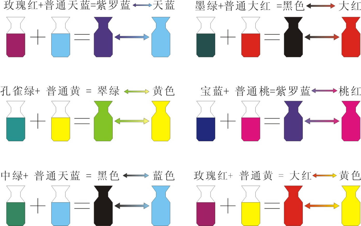 2-2、感溫變色顏料與普通顏料之間拼色: