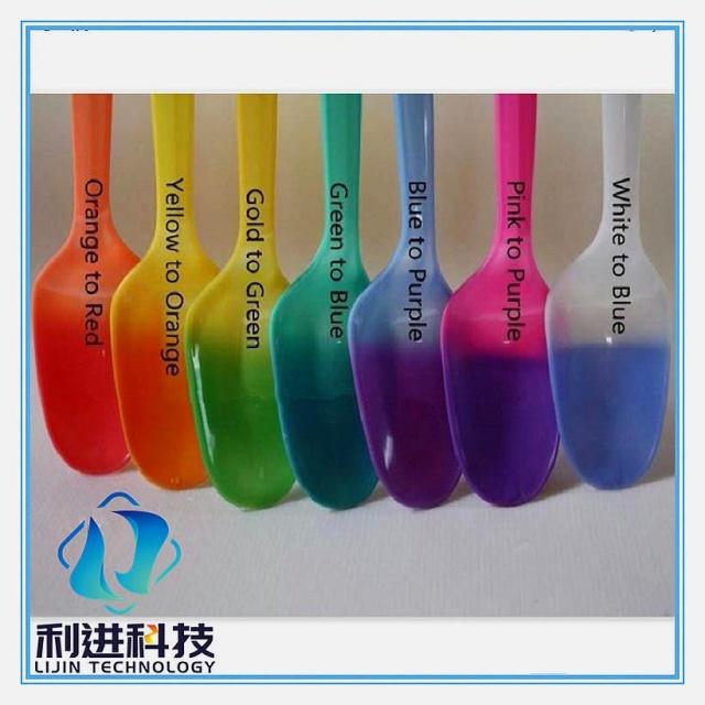 感溫粉又稱熱變色粉、熱敏色粉,示溫色粉、感溫粉,它是一種能隨溫度變化而發(fā)生顏色變化的特種顏料,可用于制作油墨(絲印、膠印、凹印、柔?。⑼苛霞白⑺艿扔猛?。用感溫變色粉可以加工出各種各樣五彩繽紛的產(chǎn)品。那么,感溫變色產(chǎn)品是永久變色的嗎?當(dāng)然不是!因為會變色的材料,就說明它存在一定的不穩(wěn)定性。那么,用感溫粉生產(chǎn)出的感溫變色產(chǎn)品究竟可以使用多久呢?它們的壽命有多長呢?怎么來測定它的變色溫度呢?